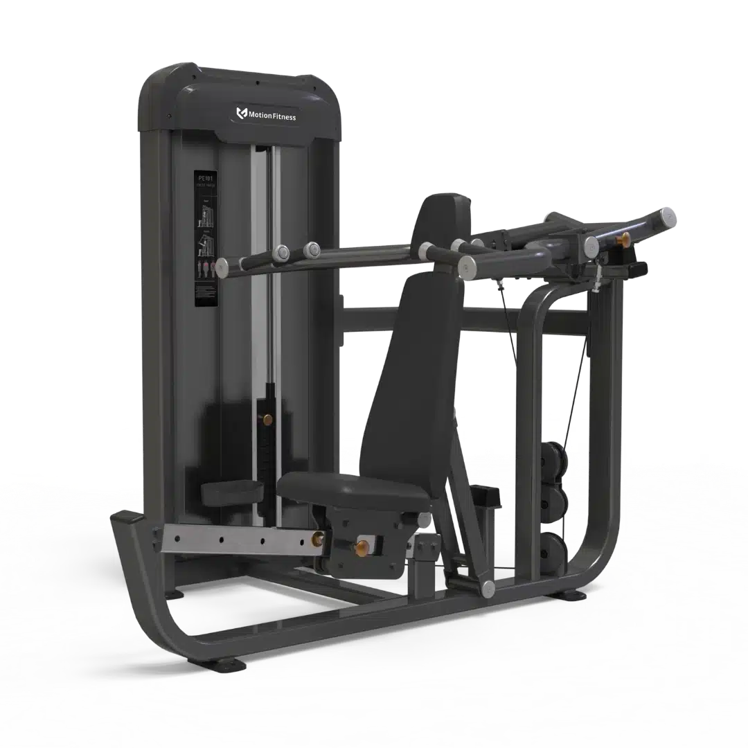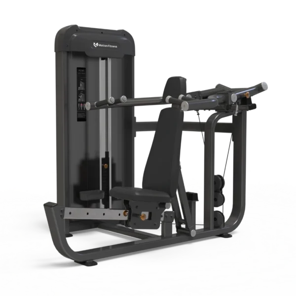 Motion Fitness Multipress kombinerer skulderpress og brystpress i én maskin, noe som frigjør gulvplass i treningsstudioet.