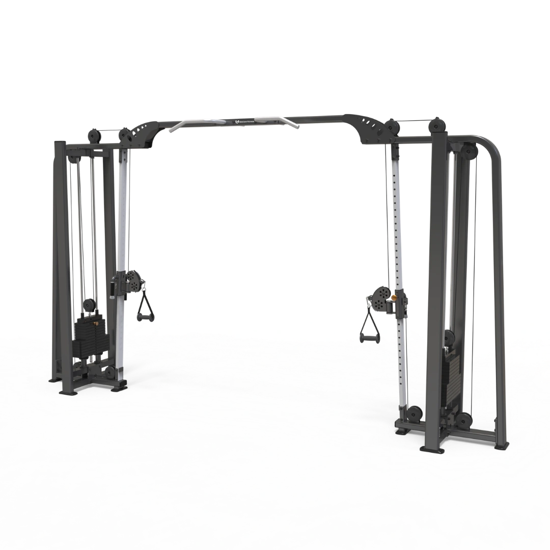 Motion Fitness Cable Cross är ett kryssdrag byggt för daglig drift i företagsgym, bostadsrättsföreningar, hotell, spa, rehab och övriga kommersiella miljöer. Den robusta ramen tål ständig belastning, och de två separata viktmagasinen gör att två personer kan träna samtidigt utan köbildning. De justerbara trissorna har trettio fasta höjder som låter användaren välja exakt vinkel och rörelsebana. Ett integrerat chinsräcke med flera greppmöjligheter höjer variationsgraden ytterligare. Komplettera helheten med slitstarka gymgolv för en säker och enhetlig yta.