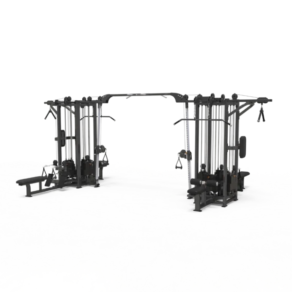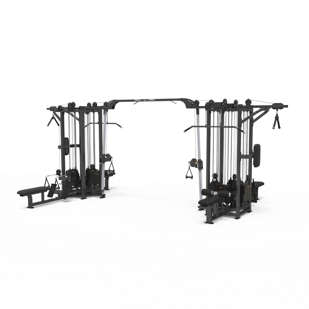 Jungle Machine 9 Stack är en komplett kabelstation för allt från kontorsgym till hotell, rehab och krävande kommersiella gym. Separata viktmagasin låter flera träna samtidigt och håller tempot uppe även under rusningstid. Svarvade remskivor, stora lager och halksäkra fötter ger jämn rörelse, stabilitet och skyddar golvet. Dynor med flerskiktsskum stöter bort svett och motverkar bakterier, så att komforten består pass efter pass.