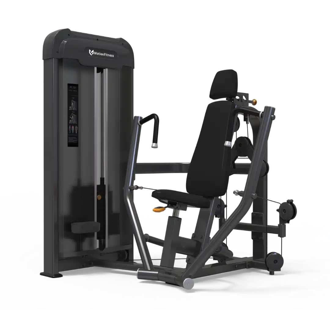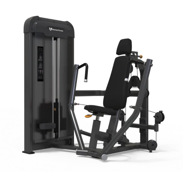 Motion Fitness Pectoral Pushdown riktar träningen mot den nedre delen av bröstmuskeln utan att ta upp onödig golvyta. Den hydrauliska sitsen och det justerbara ryggstödet hjälper varje användare att hitta sin individuella vinkel på några sekunder. Maskinens rena linjer och lilla fotavtryck gör den lika självklar i företagsgym, BRF-gym, hotell och spa som i rehabmiljöer och kommersiella anläggningar. En inbyggd hållare för mobiltelefon, nycklar och vattenflaska samlar småsaker och bidrar till en lugnare sal.